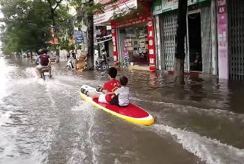 Estos niños han aprovechado las colosales tormentas en Vietnam para surfear en la calle