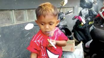 Este niño indonesio de dos años se fuma 40 cigarrillos al día