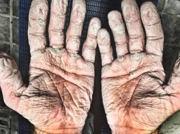 Así quedan las manos de un explorador tras remar mes y medio por el Ártico